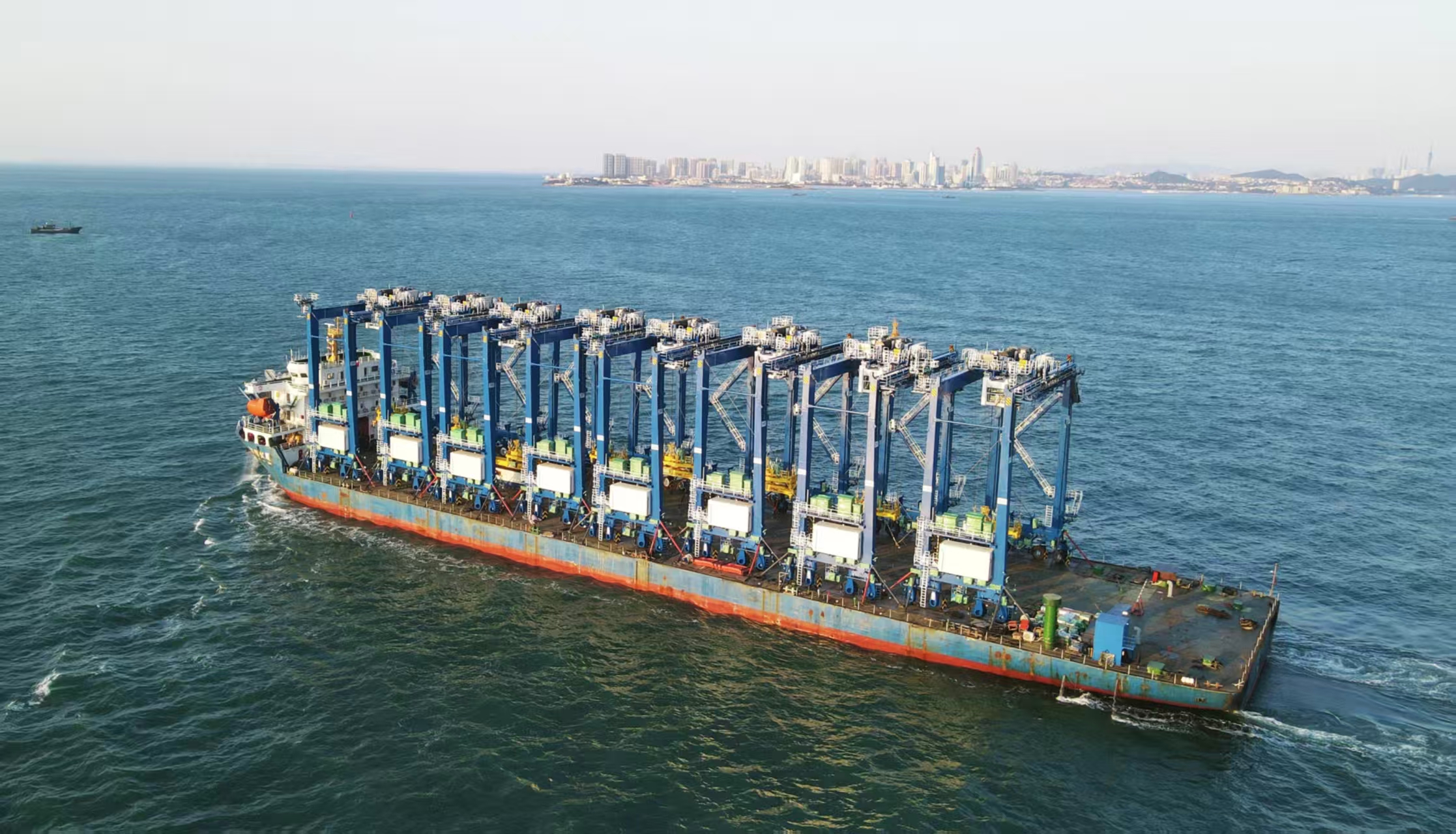 10月21日,中船集团武汉船机旗下海西重机为宁波北仑涌和集装箱码头有限公司量身打造的批量自动化轮胎吊从海西重机码头顺利启航发船,标志着该项目正式进入交付阶段。