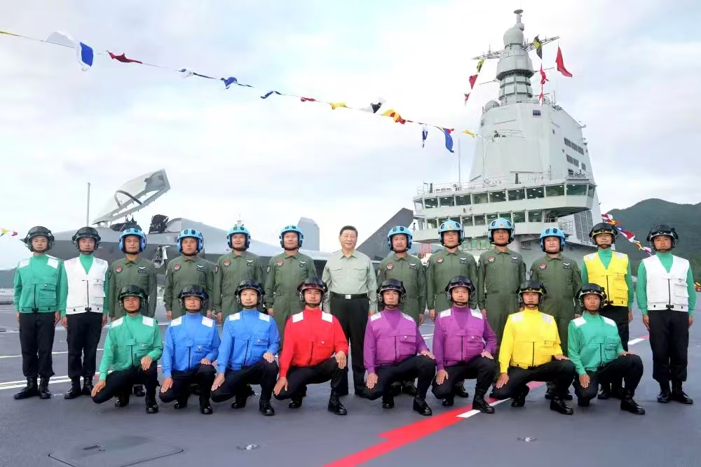 我国第一艘电磁弹射型航空母舰福建舰入列授旗仪式5日在海南三亚某军港举行。中共中央总书记、国家主席、中央军委主席习近平出席入列授旗仪式并登舰视察。