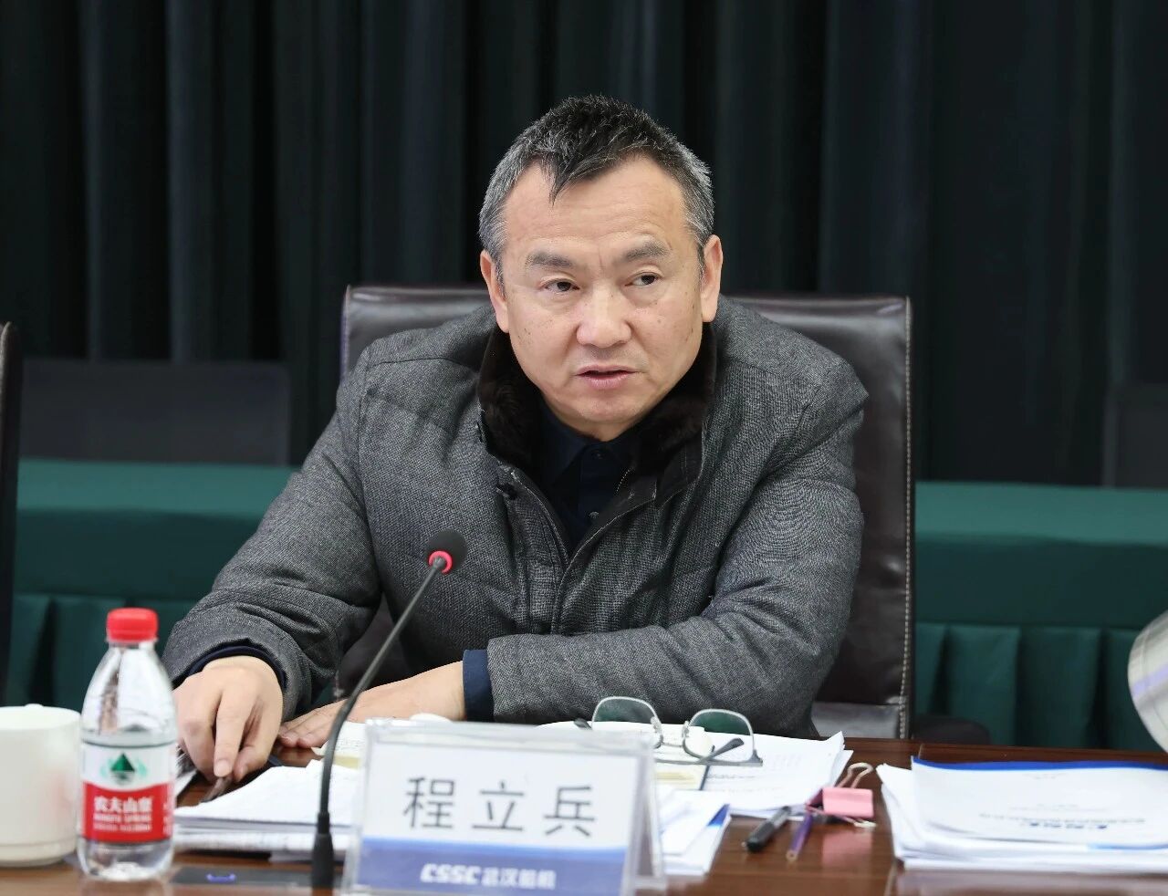 2月27日上午,中船武汉船机在研发楼102会议室召开2026年经营策略发布会,公司党委副书记、总经理程立兵,副总经理潘文胜,总会计师、工会主席陈世龙,副总经理孙凯、副总经理霍小剑、副总经理胡发国、副总经理程文池出席会议。会议由程文池主持。
